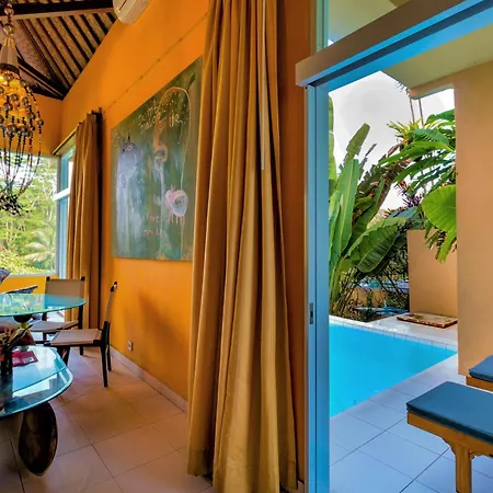 Pita Maha Resort & Spa offers spacious villas with private balconies, providing sweeping views of Campuhan Valley. The resort's Balinese-style interiors and modern comforts attract visitors looking for a peaceful retreat. Guests can indulge in massages at the spa, enjoy yoga classes, or explore Ubud with complimentary bicycle rentals. The location is ideal, being just a short distance from Ubud's attractions and natural beauty.